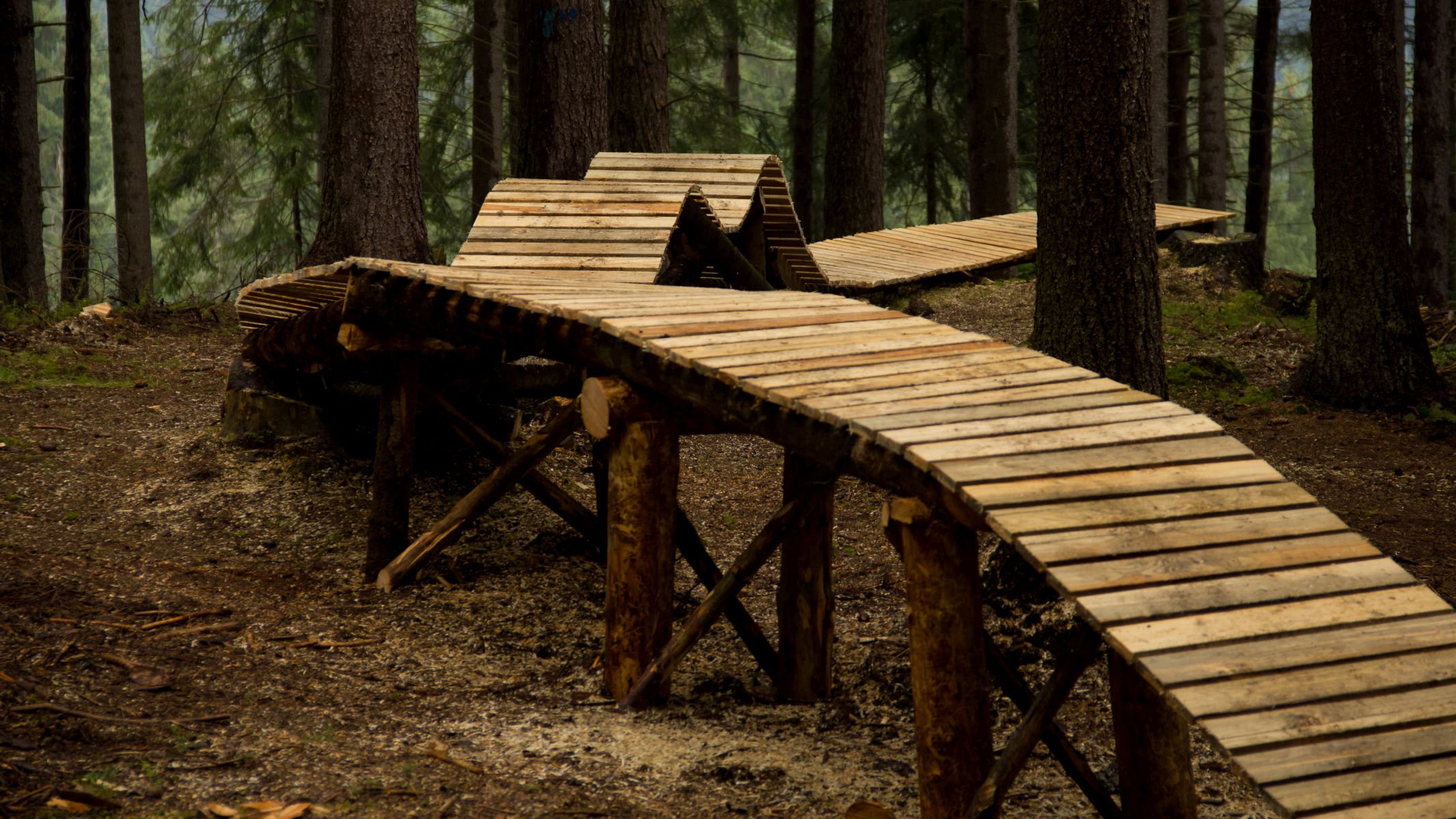 The track is intended for the most demanding bikers and it is similar to North Shore Trail. In addition to typical woodland growth, it also consists of wooden bridges of various shapes. The entry to the track is from track number 2 (Blue Velvet), approximately after 1.7 km, and it exits to track number 4 (Monster Dog). It is possible to continue along tracks number 1 (Green), 2 (Blue Velvet) and 4 (Monster dog).