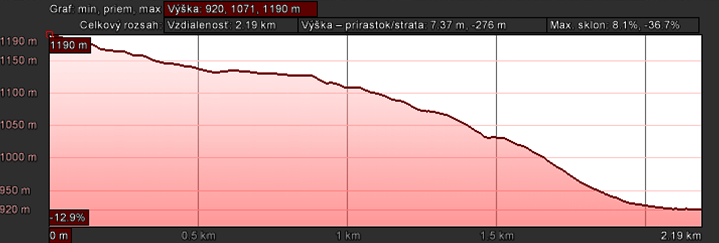 The track begins near the top station of the chair lift and continues along the ski run, through easy curves, to the notch below the peak of Malinô Brdo. This section offers beautiful panoramic views of the Choč Mountains, the West and the Low Tatras. After approximately 1000 m, the track enters the nearby woodland area, in which there are several spiral sections, and later it exits back to the ski run, and crossing the ski run through traversing sections it leads to the valley station of the four-seat chair lift.