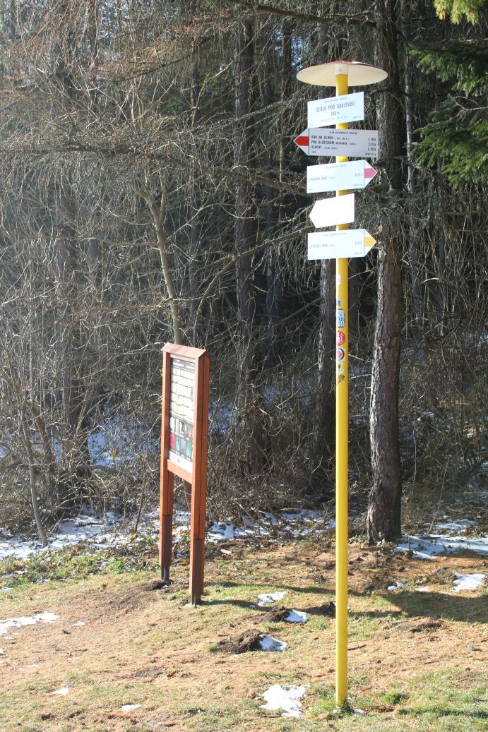 The marking on the route is sufficient, except for one section. There are places where the marks are poorly visible, especially in summer and spring, when there is grass and there are leaves on the trees and bushes. In the section of Kalameny, pond – notch Sedlo pod Kráľovou, the marking is less satisfactory, as the route runs on a meadow along the periphery of a wooded area, where there are bushes, on which you cannot put marking. However, you simply need to stay close to the periphery of the woods and continue uphill all the way to the notch.