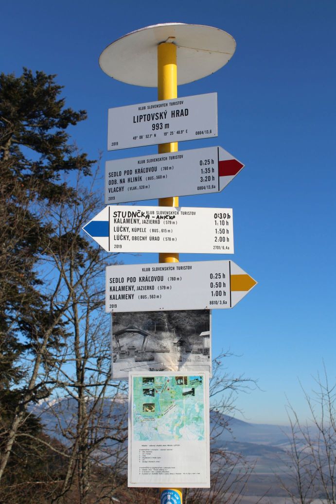 The trail runs from the centre of Kalameny to the mouth of the Kalamenská Valley, in which there is a pond with warm mineral water. It continues to notch Sedlo pod Kráľovou and then to the peak of Sestrč hill. Situated on the platform at the peak are preserved ruins of the Liptov Castle, from which you can get beautiful views of the Liptov Basin and the surrounding mountains.