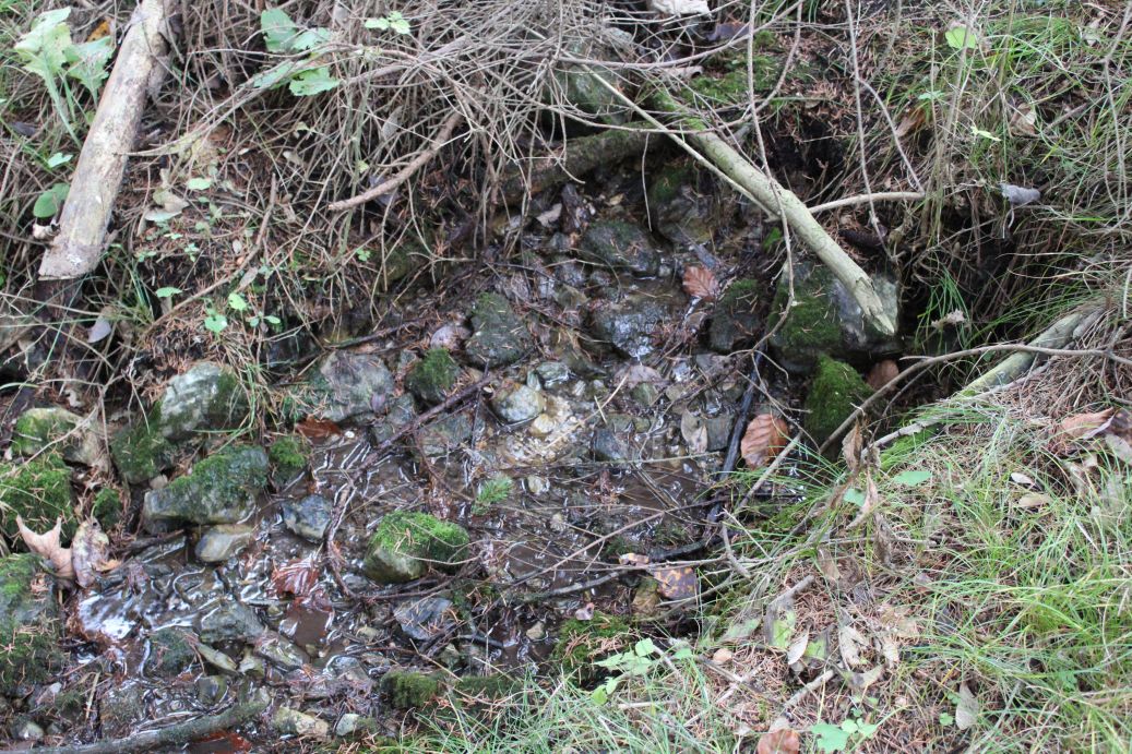 – The springhead is covered with growth.