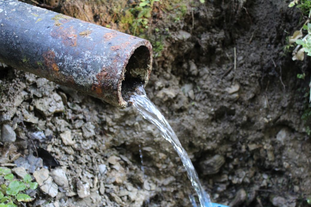 – The water is led above the ground in an iron pipe.