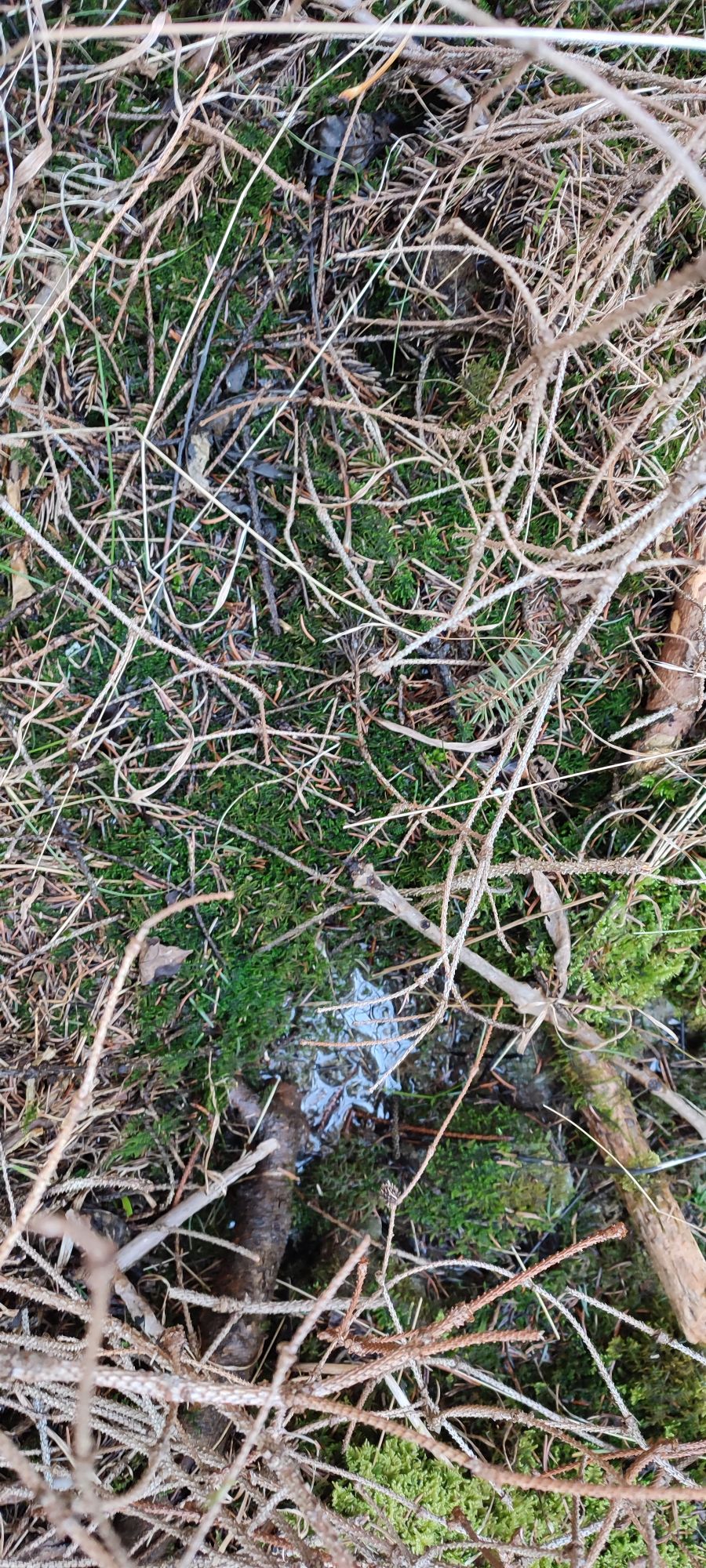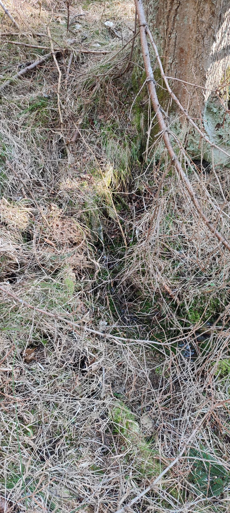 – The water surfaces under a tree, from a gravel bed covered with moss.