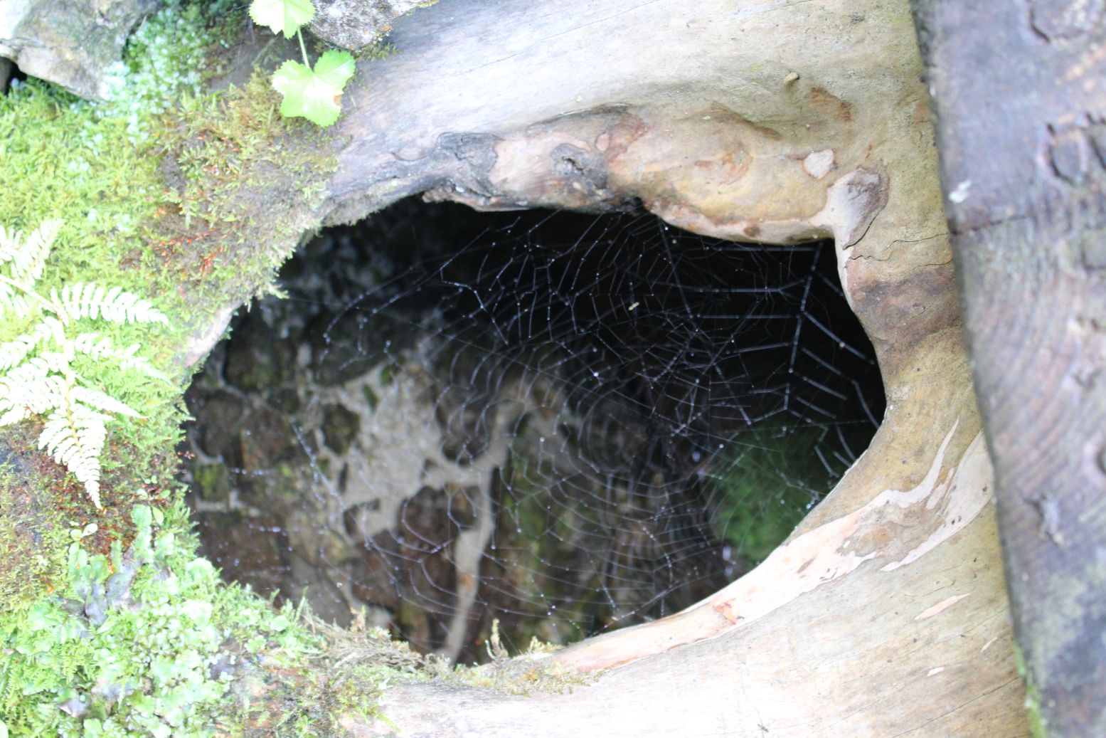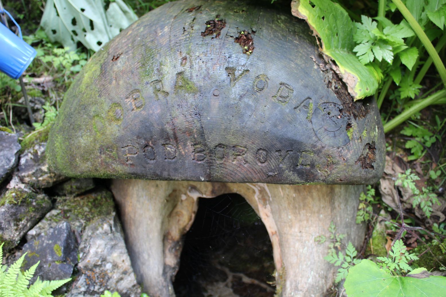 – The well consists of a hollow tree trunk in the shape of a mushroom, which is built into the slope by the road.