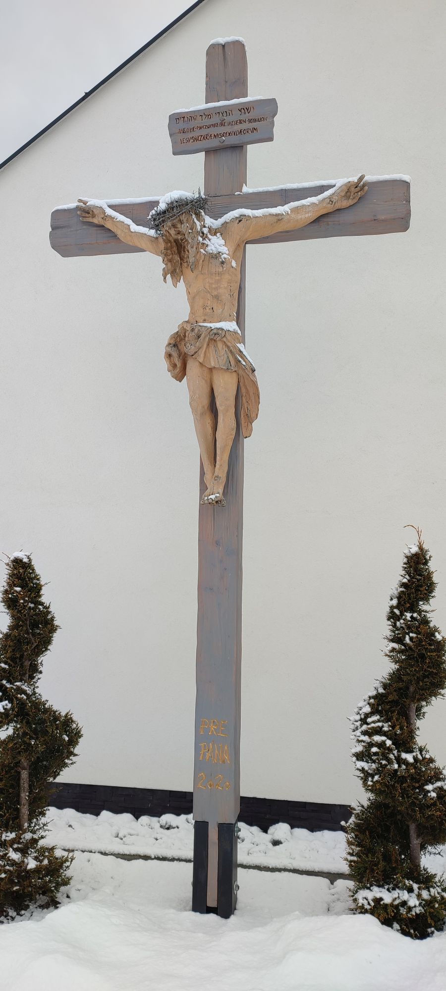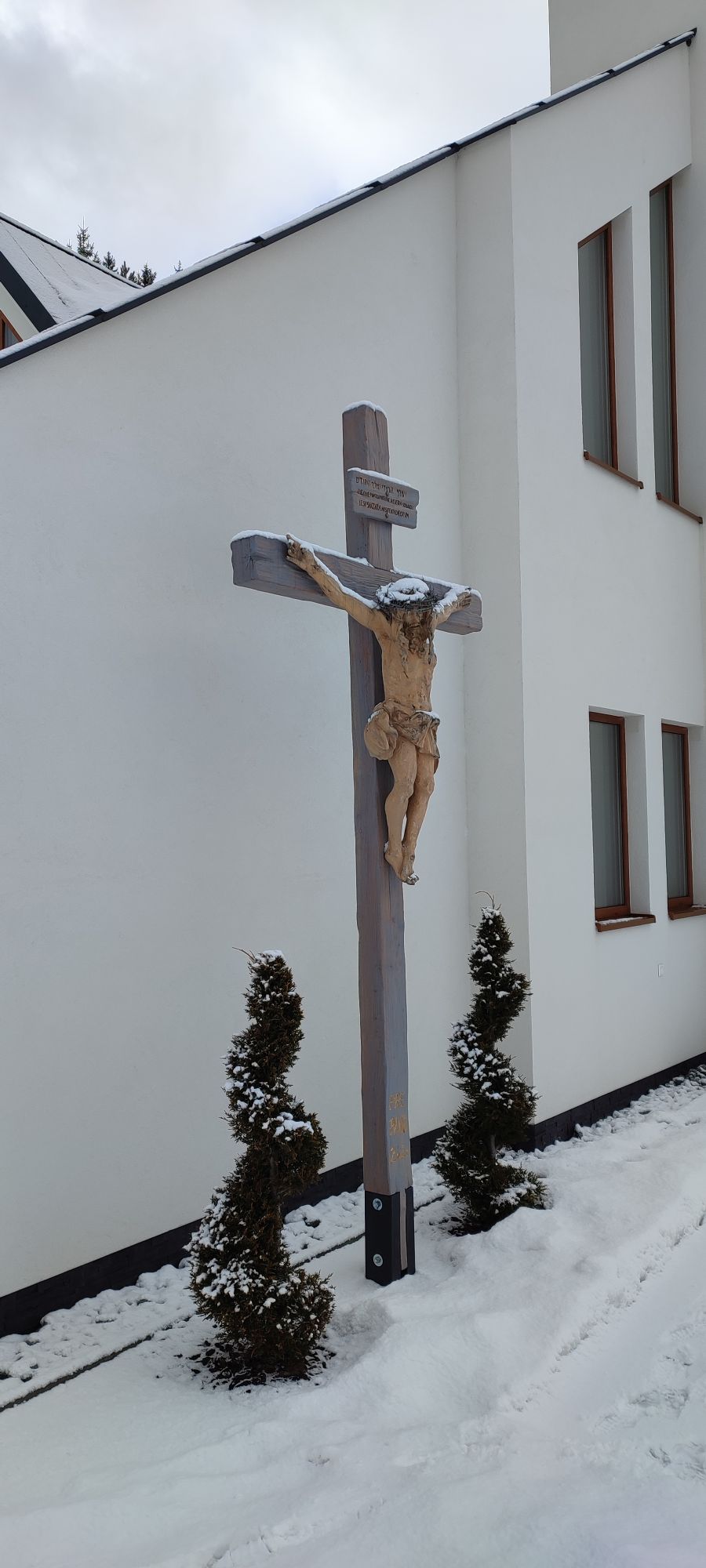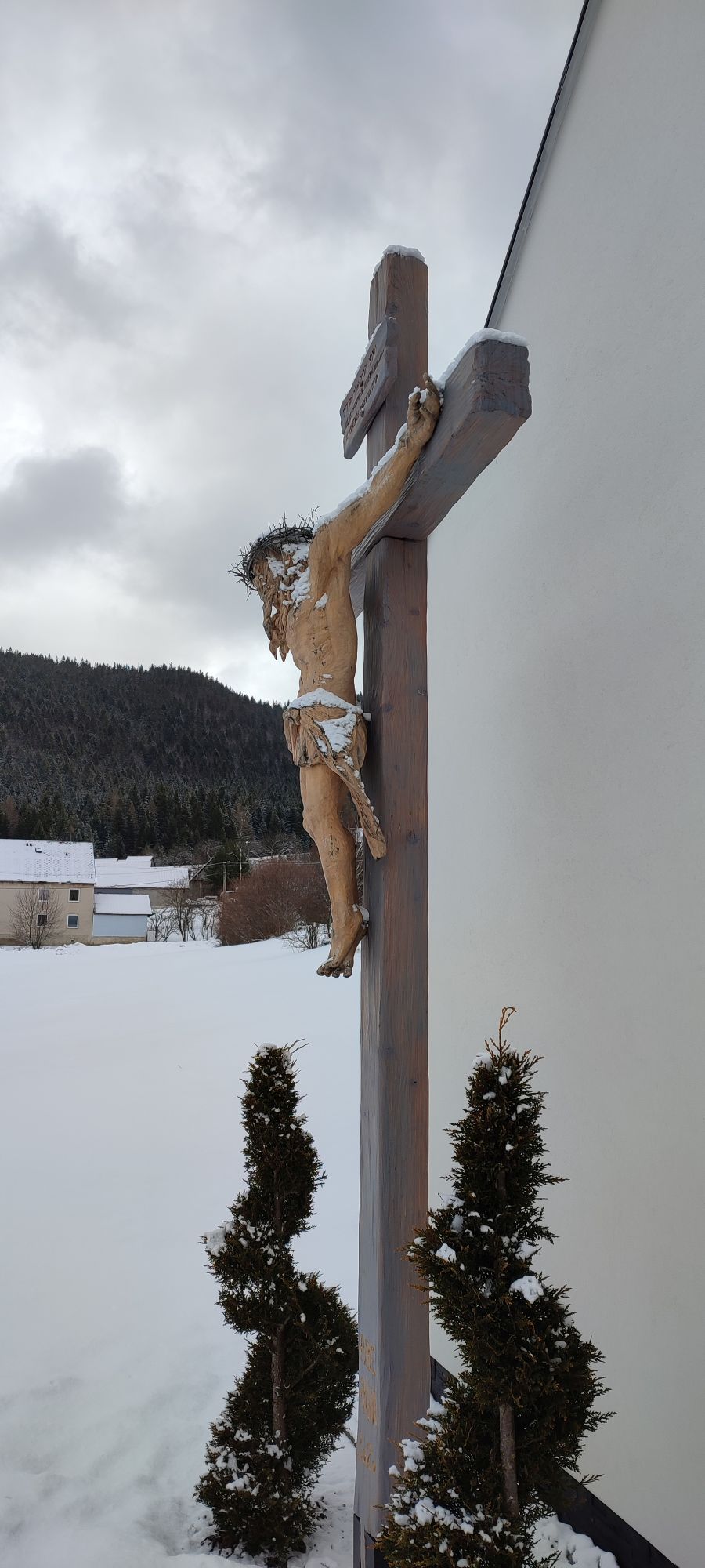 – The cross is made of wood, with a statue of Christ.