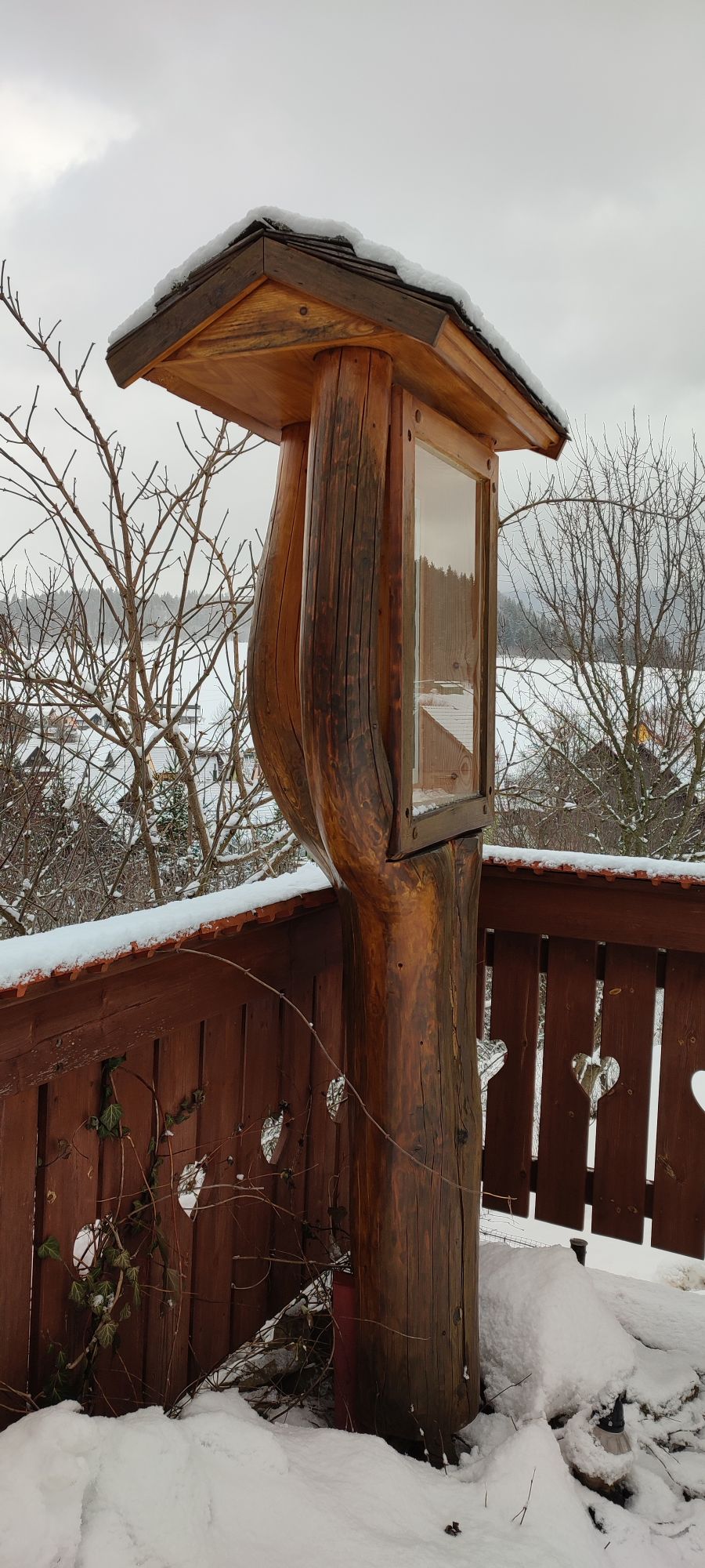 – The station consists of a glazed wooden frame placed into a wooden stand made of an altered tree trunk.