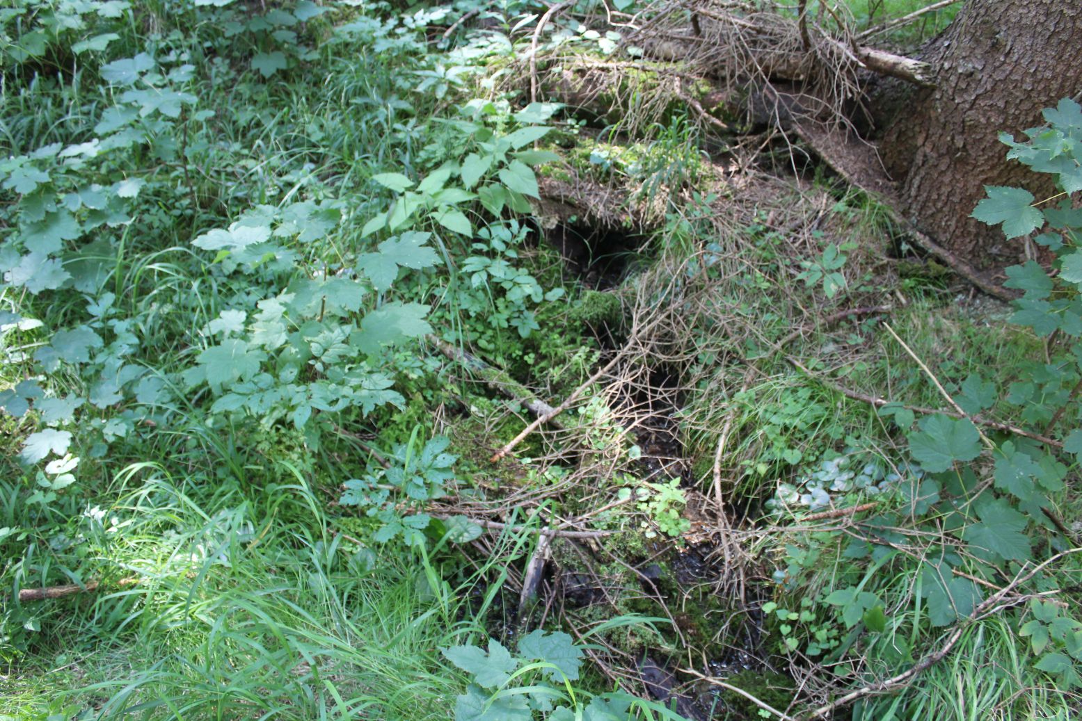 – Prameň potoka Droždivá v rovnomennej dolinke vyviera zo skalnatého podložia pod stromom.