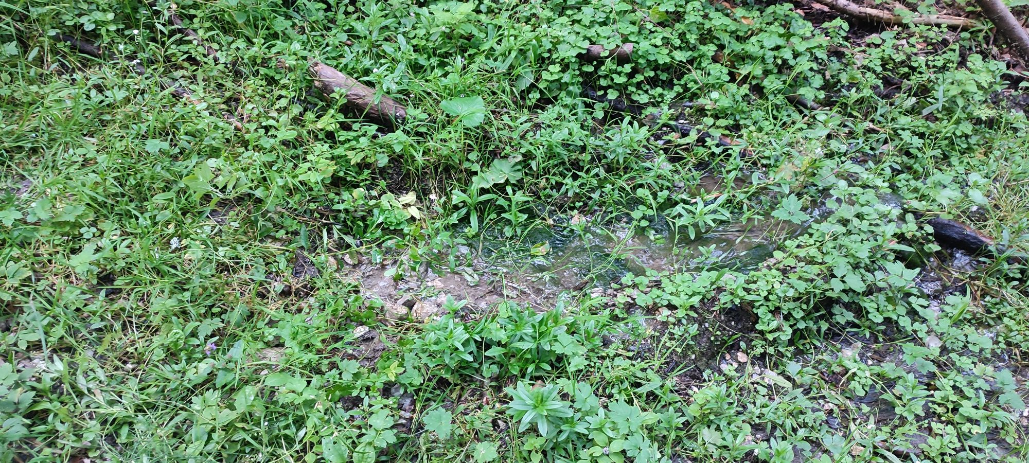 – Voda vyviera zo štrkového podložia v dolinke so zalesnenými svahmi nad ňou.