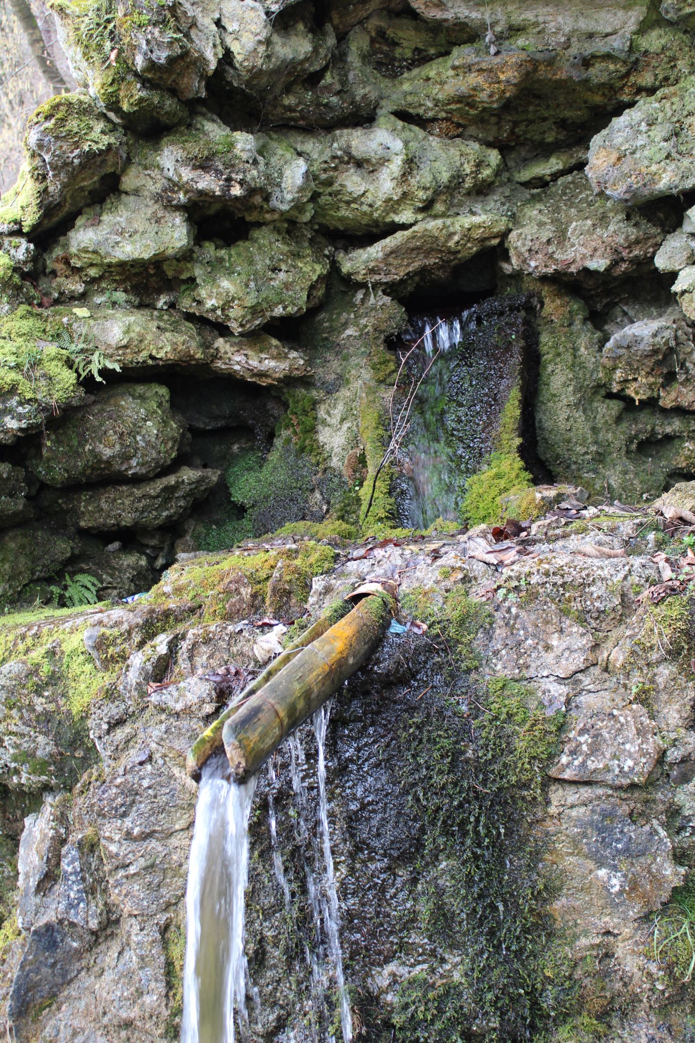 – Prameň zo zeme vyviera v kamennom návrší, ktoré vytvára dojem jaskyne.