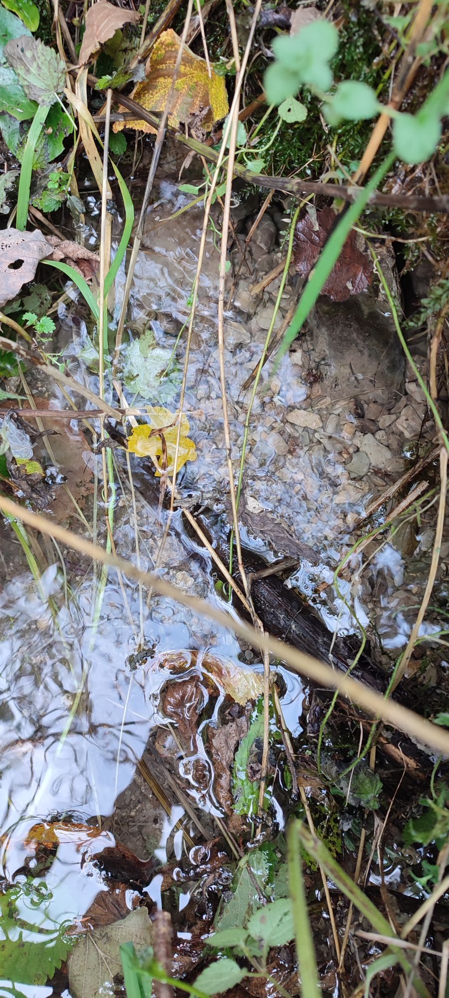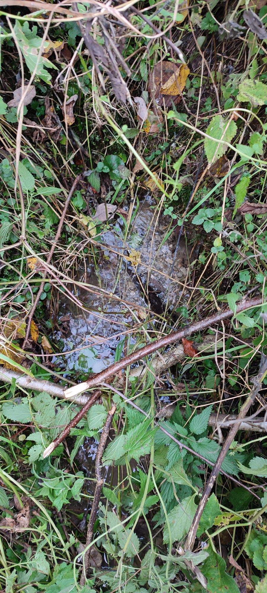 – Voda odteká terénnym žľabom popri ceste.