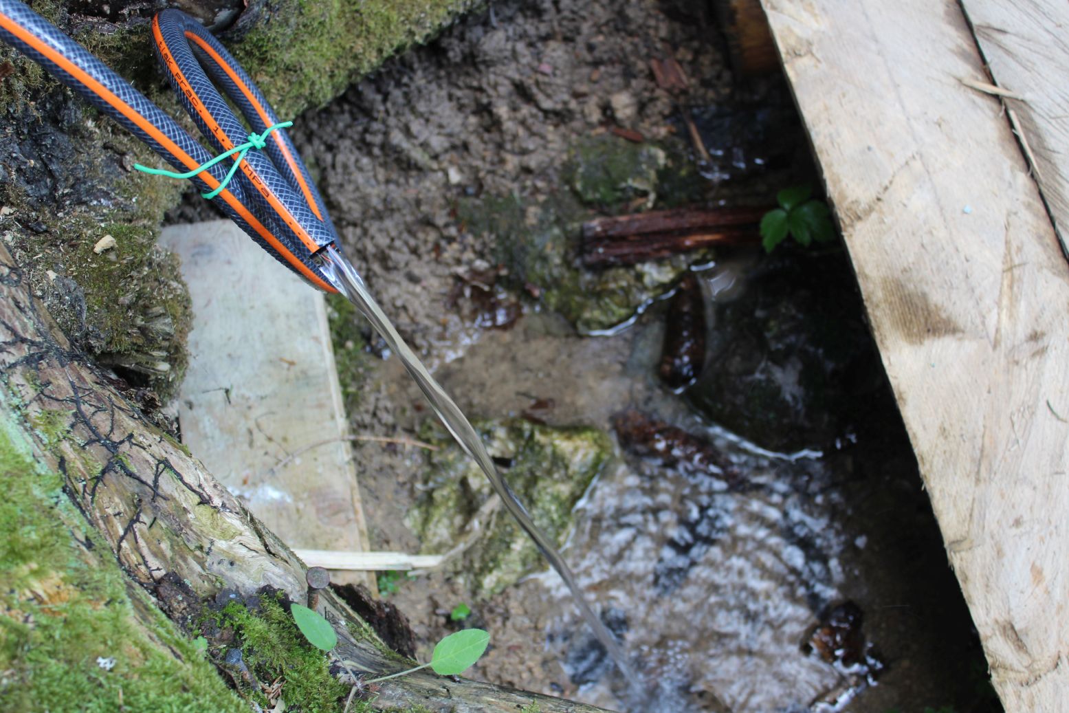 – Pod výtokom je vytvorený provizórny mostík z dreva pre lepší prístup k vode.