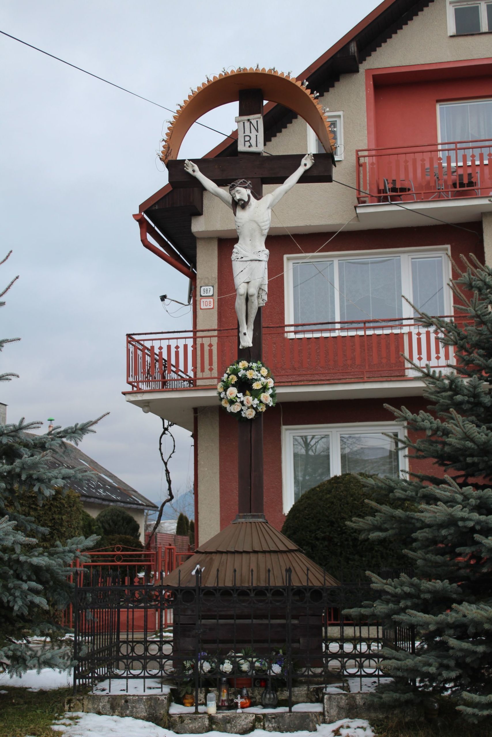 – Na kríži je umiestnená okrúhla strieška.
