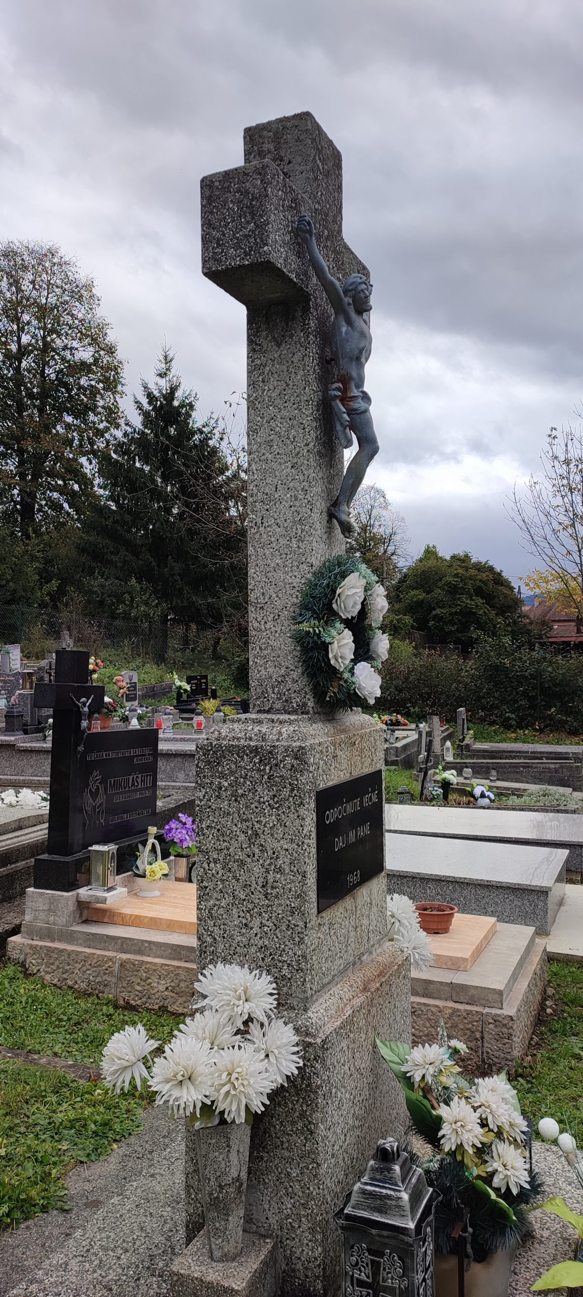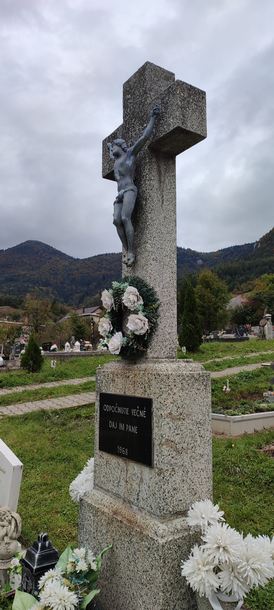 – Kríž je postavený na betónovom podstavci, ktorého súčasťou sú vázy na kvety, nápis „Odpočinutie večné daj im pane 1968“ a priestor na kahance.