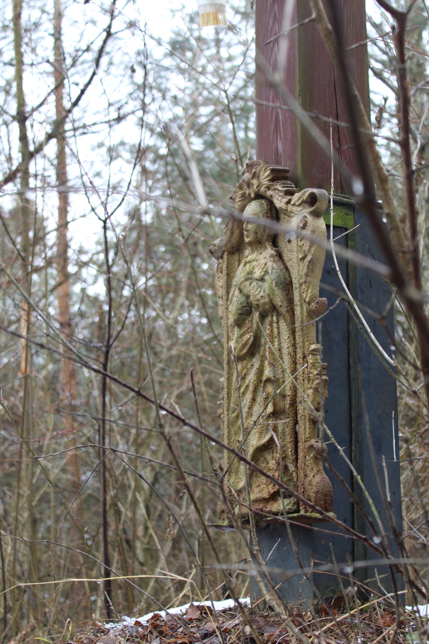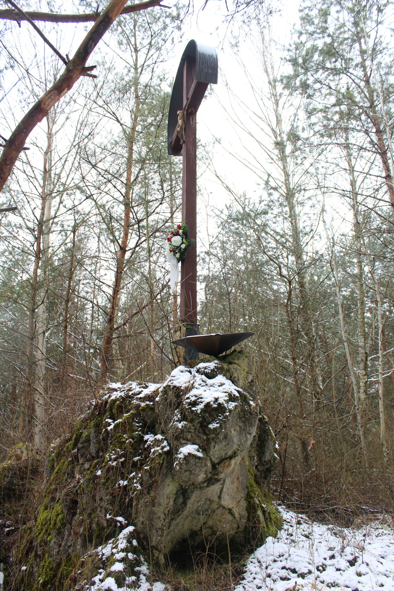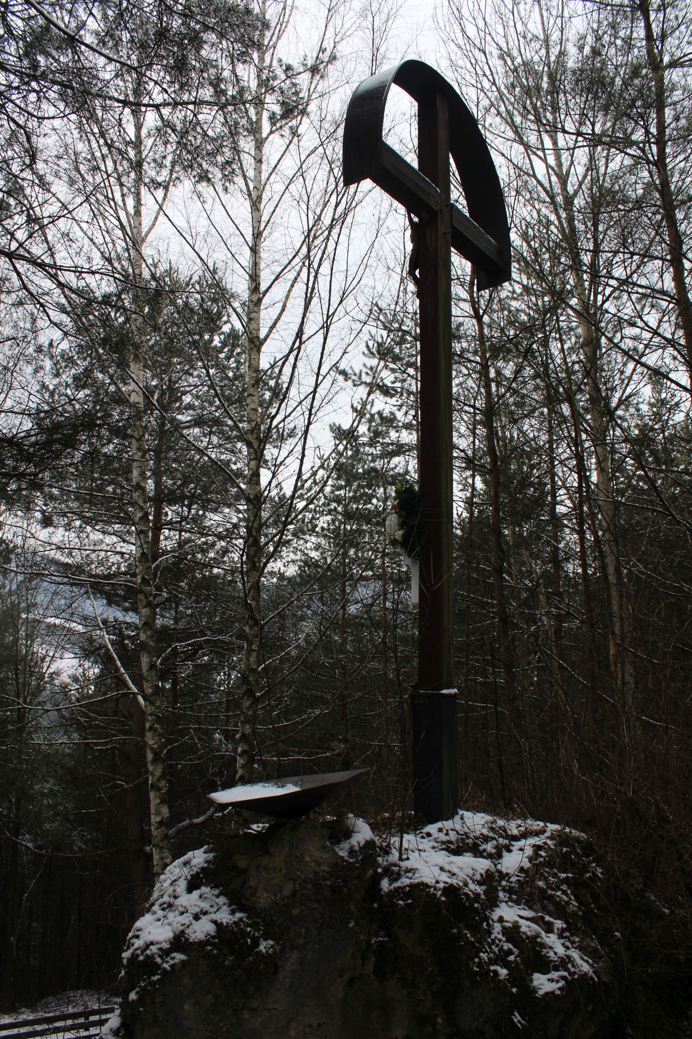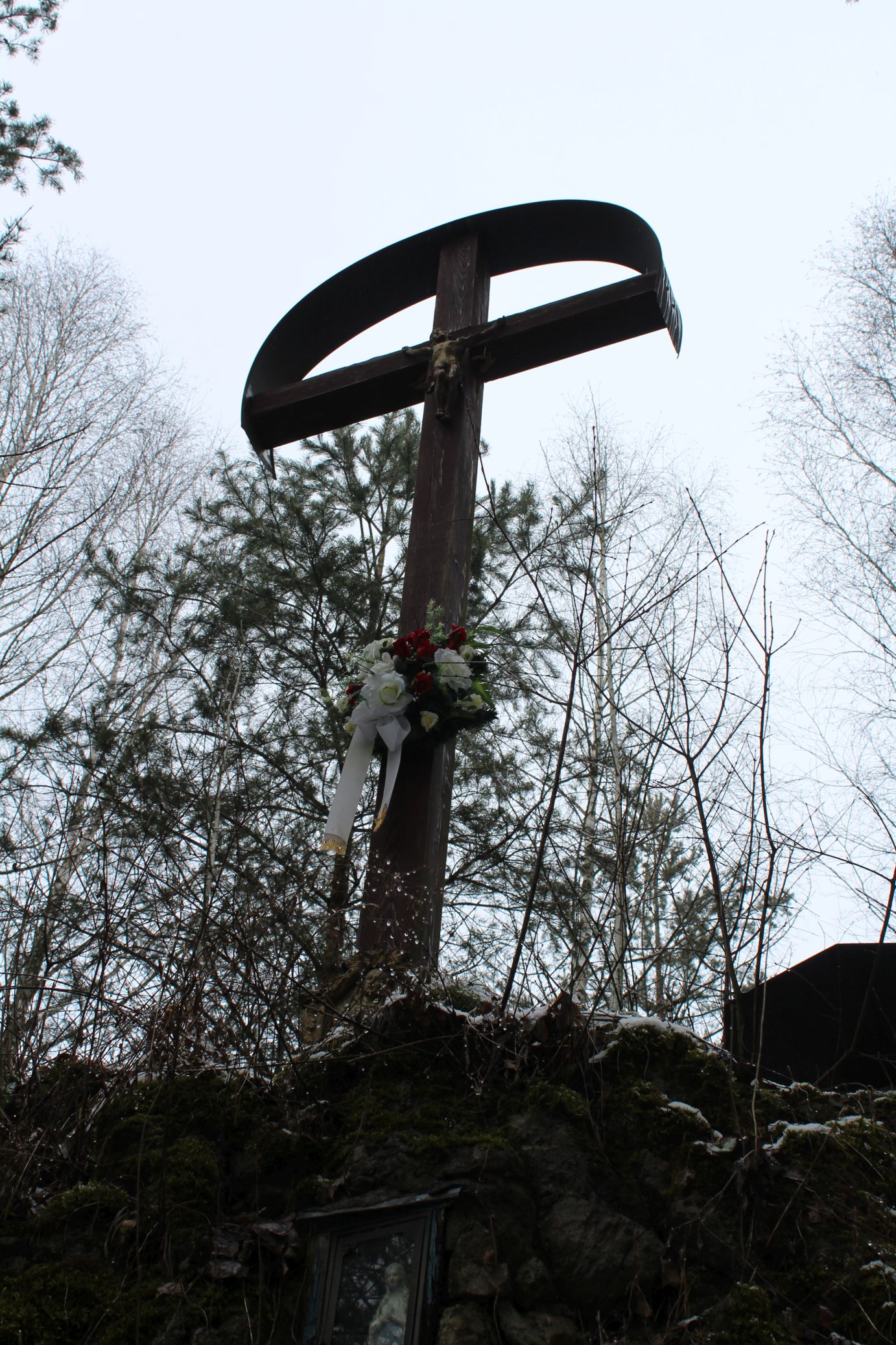 – Pod krížom v skale je umiestnená soška Panny Márie.