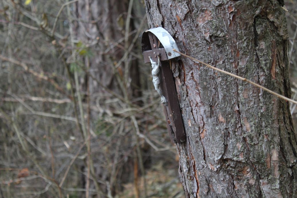 – Je umiestnené na strome, vedľa chodníka ku krížovej ceste.