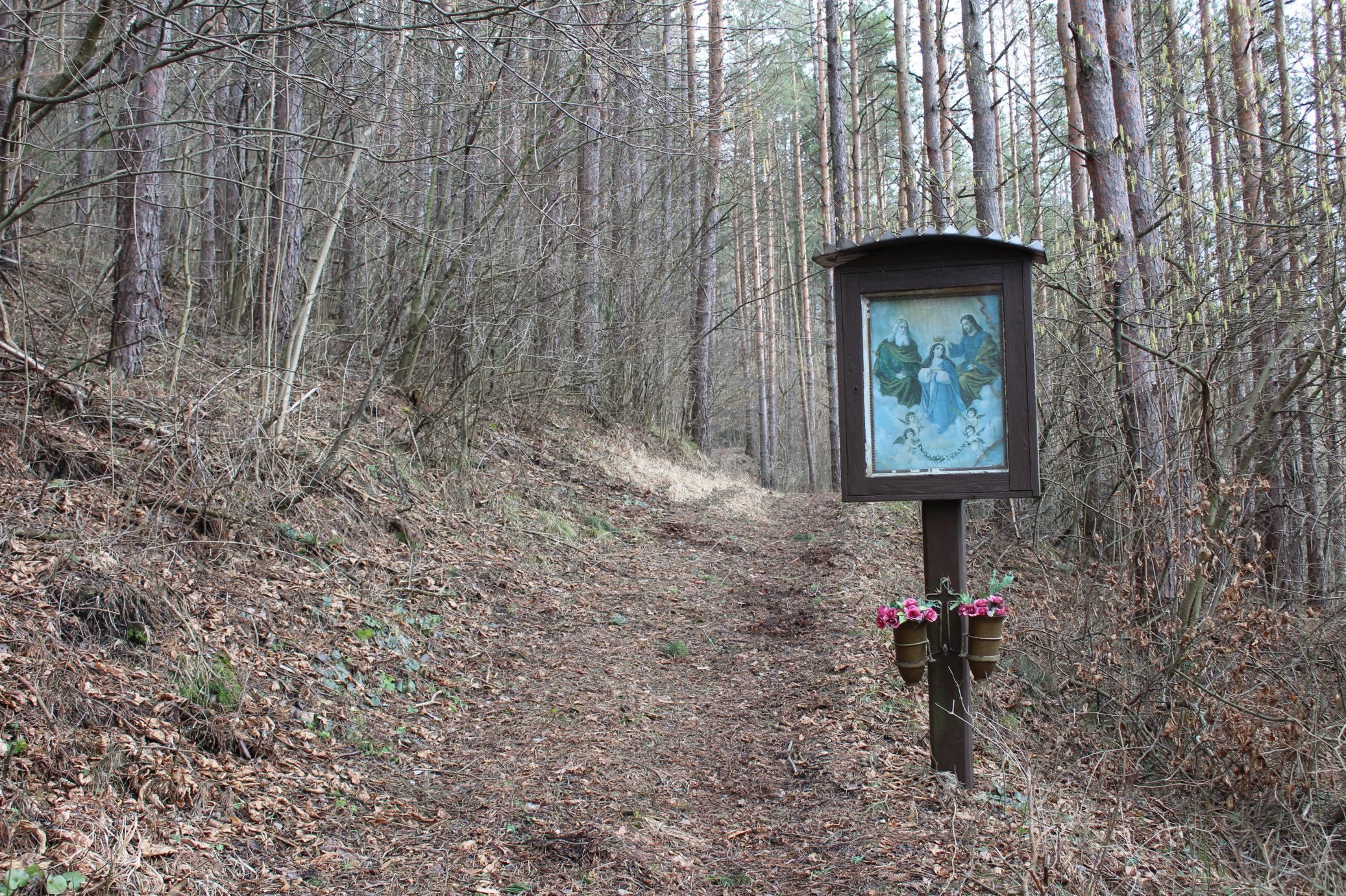 – Je umiestnené na drevenom podstavci vedľa chodníka ku krížovej ceste.